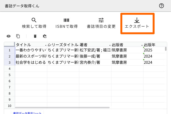 なお、「書誌データ取得くん」でエクスポートする書誌データは、「Shift-JIS」で表示できない文字をすべて「?」に置き換えています。